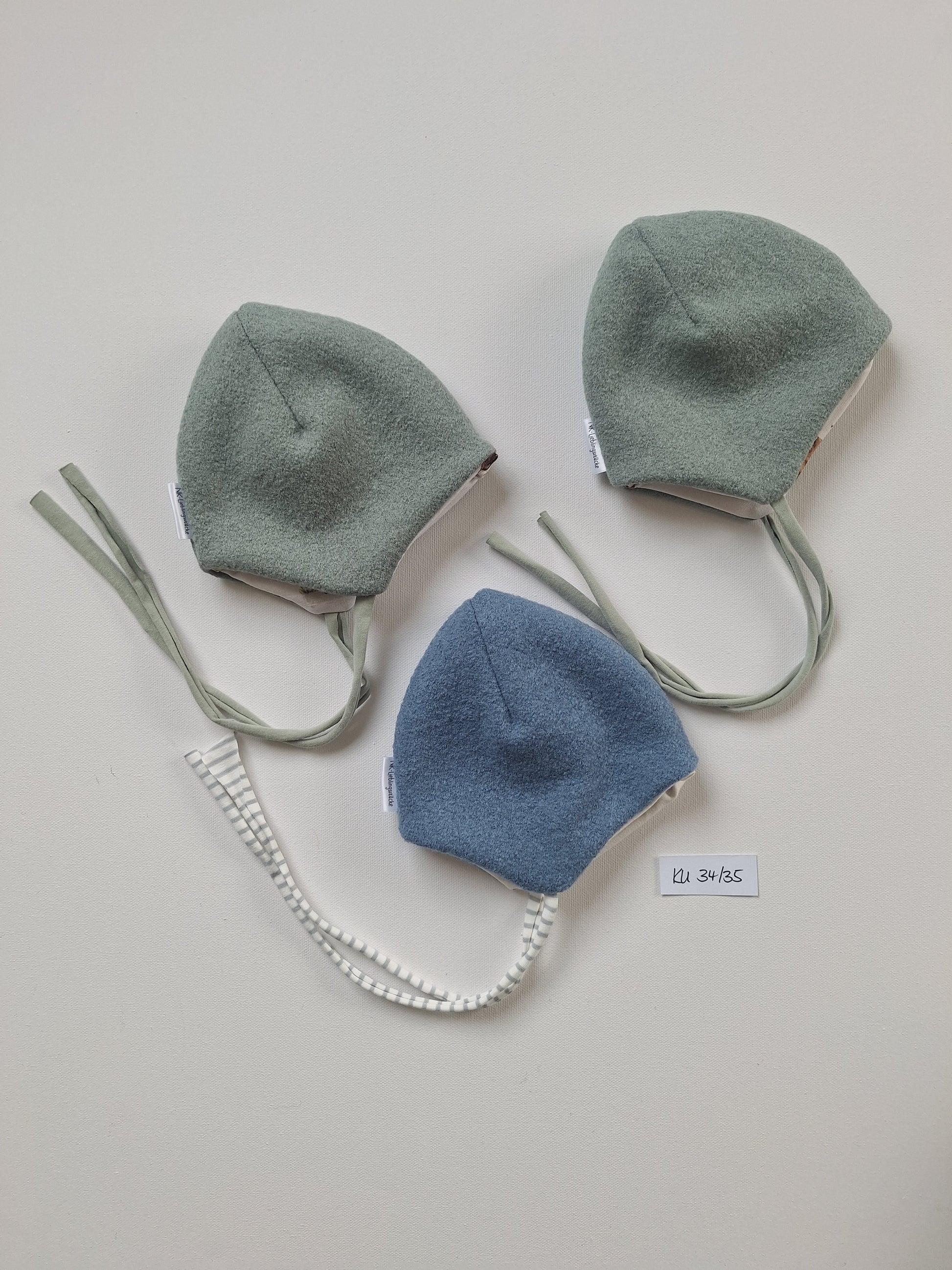 Die Walkmützen bestehen aus 100% Merinowolle und sind perfekt für Temperaturen von ca. -12 bis +12 Grad geeignet. Sie sind komplett gefüttert und mit einem Bindebändchen aus Jersey versehen.