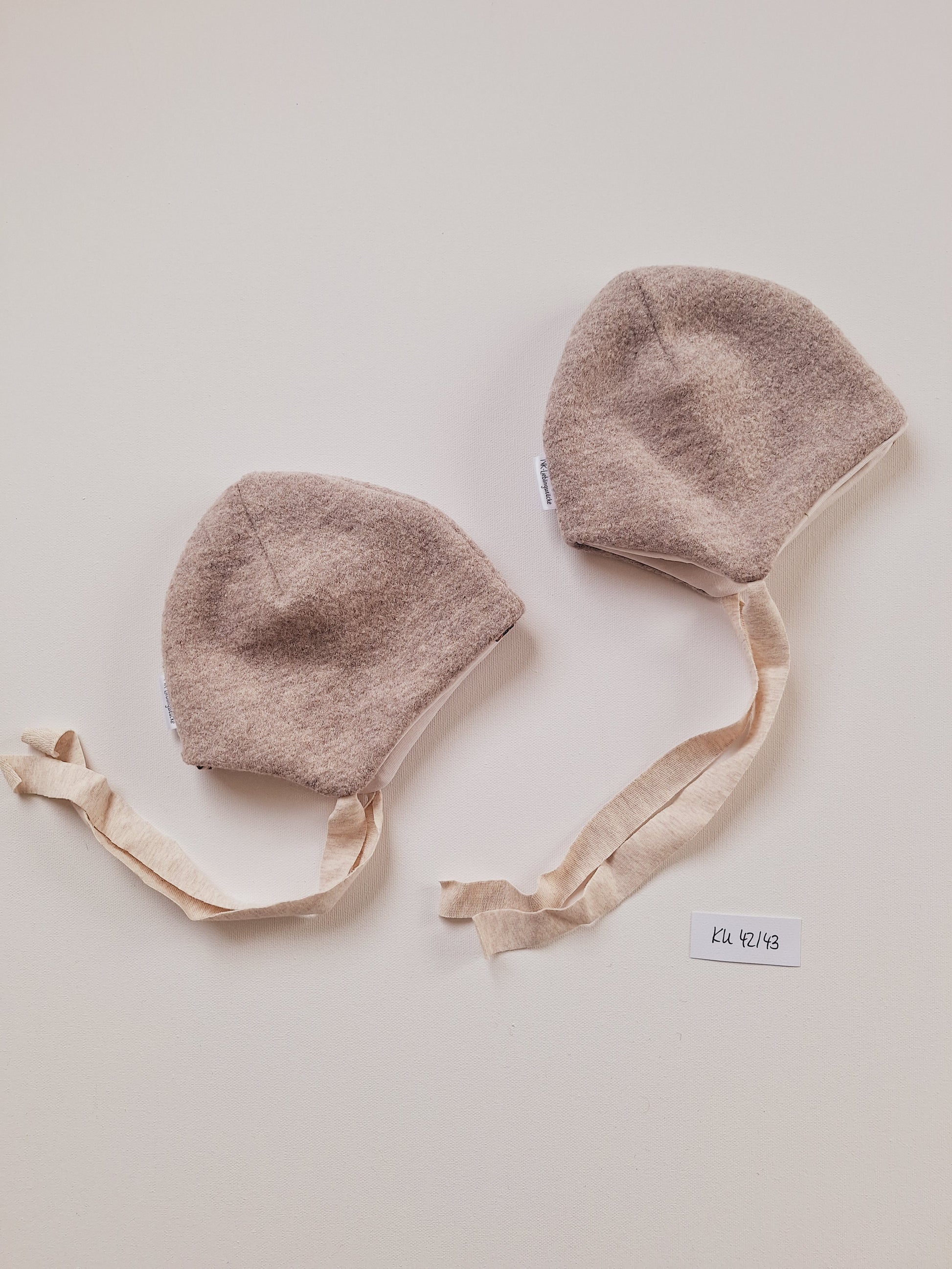 Die Walkmützen bestehen aus 100% Merinowolle und sind perfekt für Temperaturen von ca. -12 bis +12 Grad geeignet. Sie sind komplett gefüttert und mit einem Bindebändchen aus Jersey versehen.