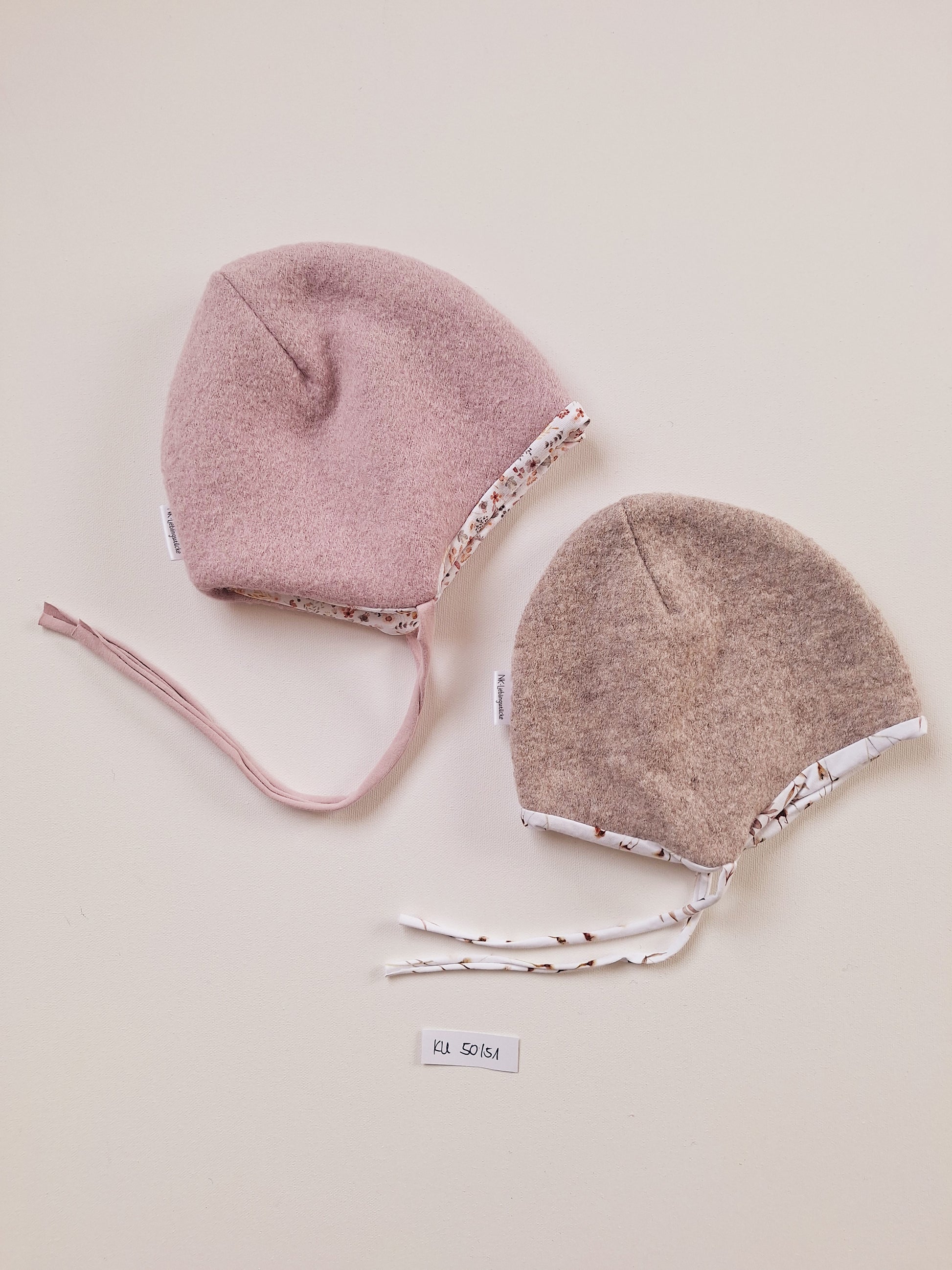 Die Walkmützen bestehen aus 100% Schurwolle und sind perfekt für Temperaturen von ca. -12 bis +12 Grad geeignet. Sie sind komplett gefüttert und mit einem Bindebändchen aus Jersey versehen.